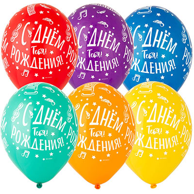 Высококачественный шар из натурального латекса. Ассорти из нескольких цветов в случайном соотношении, одного типа — пастель — матовый оттенок цвета. Шары с пятисторонним — круговая печать, шелкографическим рисунком на тему С Днем Рождения Тебя. Ноты. Предназначен для розничной продажи воздушных шариков. Идеальный ассортимент для праздничных оформлений. Воздушные шары изготавливаются из экологически безопасного 100%-ного натурального латекса. В окружающей среде разлагаются на безопасные компоненты примерно с той-же скоростью, как обычные листья деревьев. После использования лопнуть и утилизировать как бытовой отход.